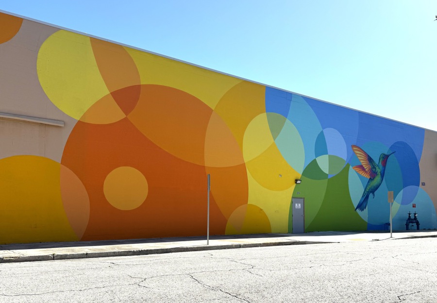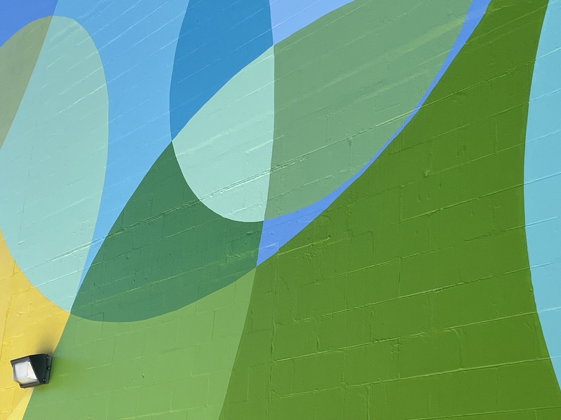 A vibrant expression of color, movement and geometry, the mural brings art and industry